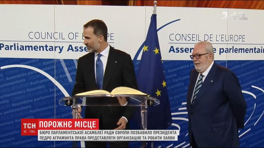 Педро Аграмунту заборонили здійснювати офіційні візити, брати участь у зустрічах та робити заяви від імені Асамблеї. Від іспанського політика чекали заяви на звільнення, але він її не написав і на засіданні бюро ПАРЄ не з'явився.