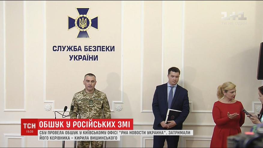 СБУ і прокуратура взялися за мережу, яку Москва використовувала в гібридній інформаційній війні. У Києві затримали керівника українського представництва російського інформагентства "РИА Новости" Кирила Вишинського.