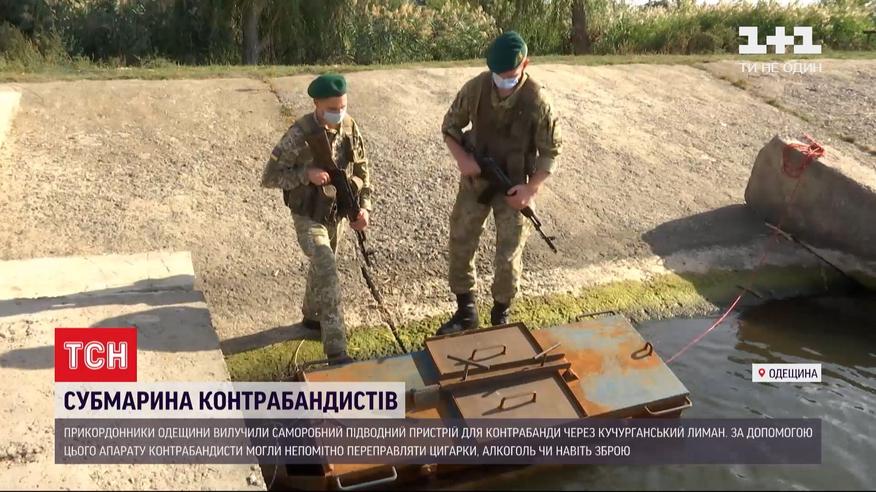 Підводна контрабанда. В Одеській області прикордонники виявили саморобний підводний пристрій під час перевірки дна Кучурганського лиману - це на кордоні з Придністров'ям. Металевий ящик-човен зверху мав герметичний люк, аби вода не потрапила в середину, а з боків - балони зі стислим повітрям для регулювання плавучості. Прикордонники кажуть: скоріш за все пристрій лише випробовували, щоб у майбутньому організувати контрабандний трафік. Всередину невеличкої субмарини могли складати цигарки, алкоголь чи навіть зброю. Під водою пристрій з контрабандою могли непоміченим переправляти з одного берега на інший. Однак прикордонники виявилися спритнішими і підводний апарат вилучили.