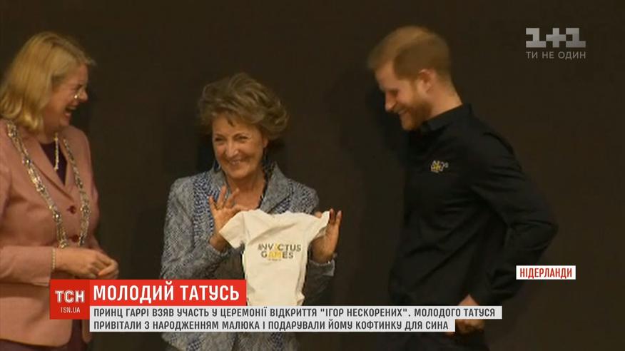 Гаррі взяв участь у церемонії відкриття вже п'ятих змагань. У спортивному протиборстві беруть участь військовослужбовці й ветерани, які отримали поранення під час виконання обов'язків. Новоспечений татусь не уникнув привітань. Його не відпустили з порожніми руками - Гаррі подарували кофтинку з написом "Ігри нескорених" для малюка Арчі".