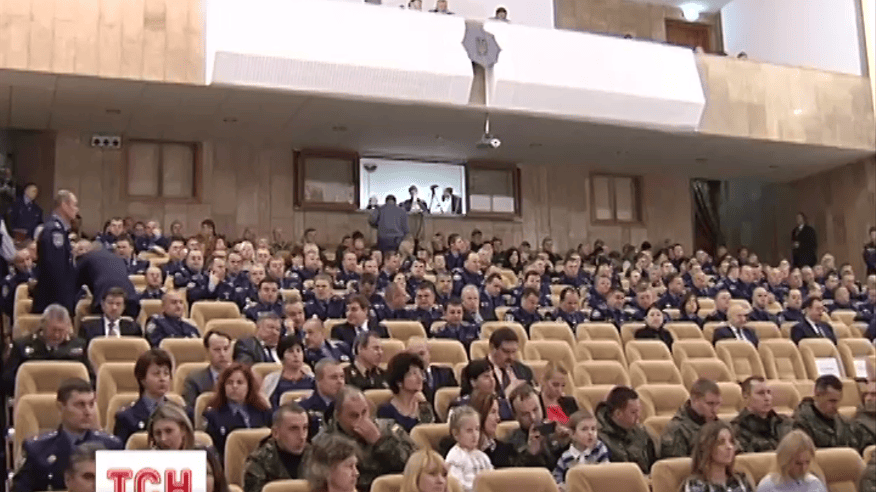 Окрім "Плине кача", у залі пролунала лише одна пісня. Виступав тільки президент Порошенко, він вручив державні нагороди та ключі від квартир. На заході була присутня і перший заступник міністра МВС Катерина Згуладзе.