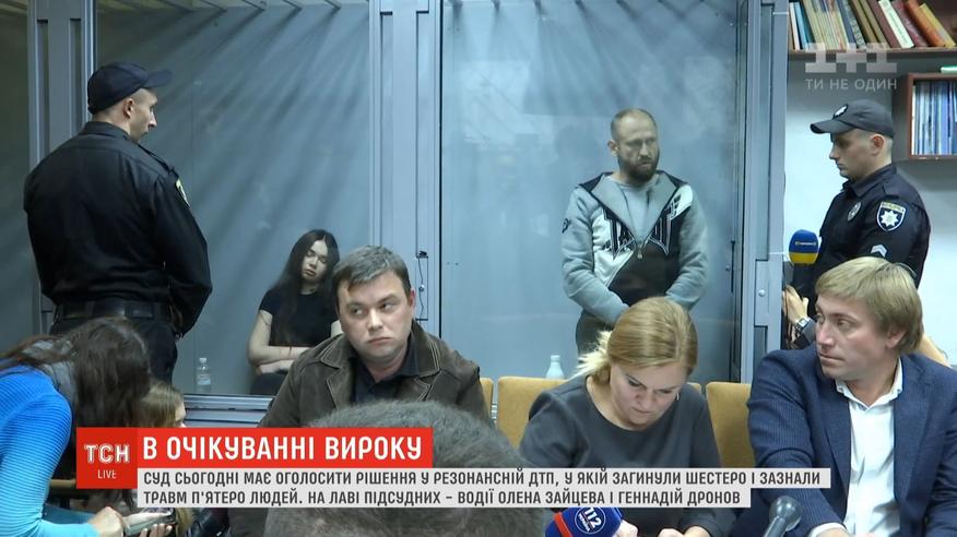 Їх обвинувачують у резонансній ДТП, в якій загинули шестеро та травмувалися п'ятеро людей. Аварія сталася позаторік восени у харківському середмісті. "Лексус" Зайцевої влетів у пішоходів, які йшли тротуаром, після того, як зіштовхнувся із "Фольксвагеном" Дронова. Зайцева провину визнала, Дронов винним себе не вважає. Для обох підсудних прокуратура просить по 10 років в'язниці.