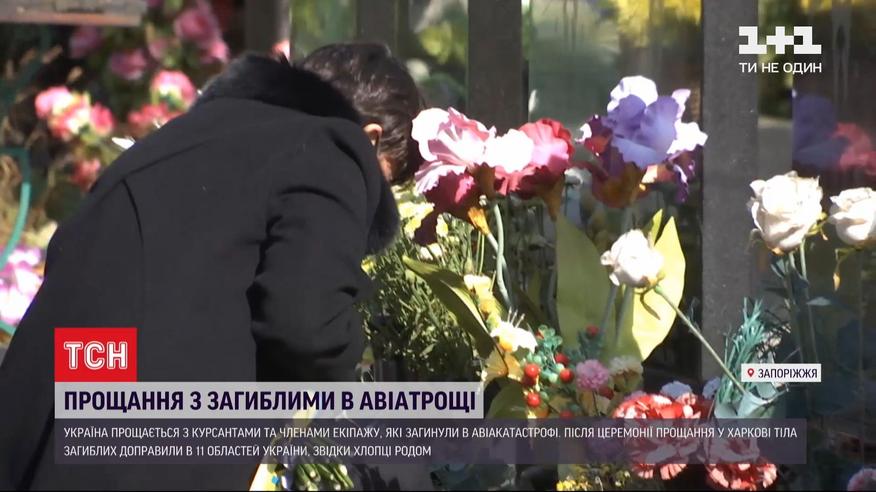 Україна проводжає в останню путь загиблих в авіатрощі під Чугуєвом. У Мелітополі попрощалися з курсантами Євгеном Скоробогатьком та Олександром Скочковим. Жалобну церемонію провели в Будинку офіцерів в авіамістечку. Віддати останню шану хлопцям зранку прийшли сотні людей - несли квіти та не стримували сліз.