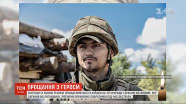 Сьогодні, 14 липня, у Львові прощаються з бійцем 24-ї бригади Тарасом Матвіївим, який загинув, на Луганщині, рятуючи побратимів. Минулої п'ятниці бойовики з артилерії вгатили по Троїцькому. Тарас витягнув з бліндажа двох поранених хлопців, та в цей час на позицію впала міна - сержант отримав смертельні осколкові поранення. Указом Президента Матвіїву посмертно надане звання героя України.