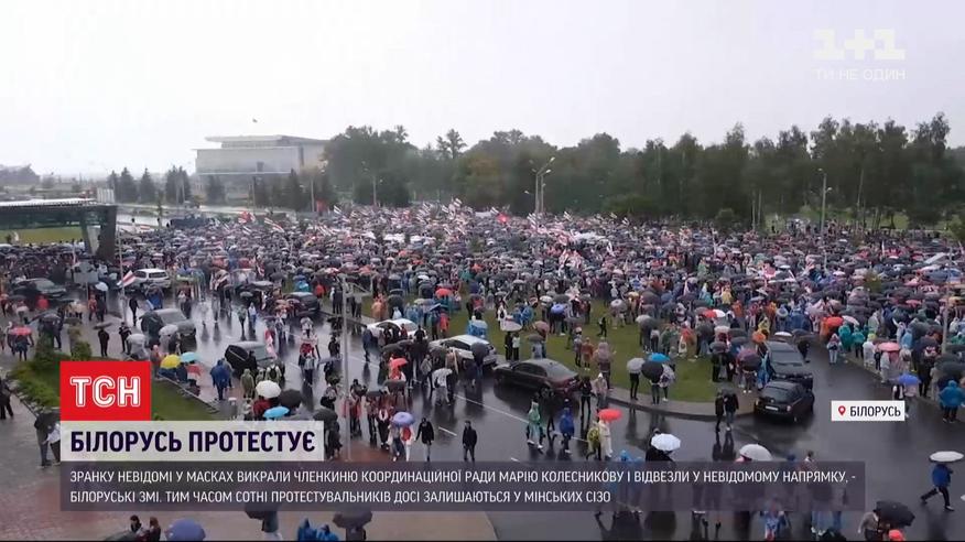 Викрадена опозиціонерка і сотні людей за ґратами - у Білорусі не вщухають масові протести. Сьогодні зранку невідомі просто у центрі Мінська викрали членкиню Координаційної Ради Марію Колєснікову, її доля наразі невідома. А у слідчих ізоляторах в очікуванні суду перебувають сотні затриманих напередодні білорусів. Облави та арешти відбувалися одразу по завершенню "Маршу єдності", на який вийшли близько ста тисяч людей. Силовики діяли з безпрецедентною жорстокістю, в хід пішли навіть так звані "тітушки".
