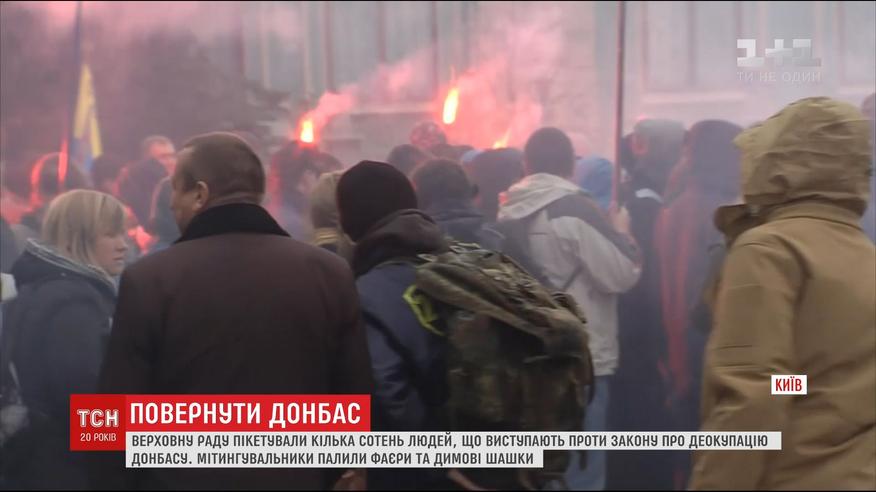 Противники законів про деокупацію Донбасу провели акцію протесту під стінами ВР