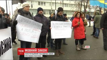 Учасники акції вимагають від суддів визнати неконституційним закон під назвою "Про основи державної мовної політики". Він був ухвалений у 2012 році за ініціативи депутатів-регіоналів і дозволив місцевим владам визначати другу офіційну мову, якщо там живе більше 10% носіїв цієї мови.