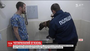 Пса, якого поліцейські визволили із зачиненої квартири, тимчасово залишили в притулку