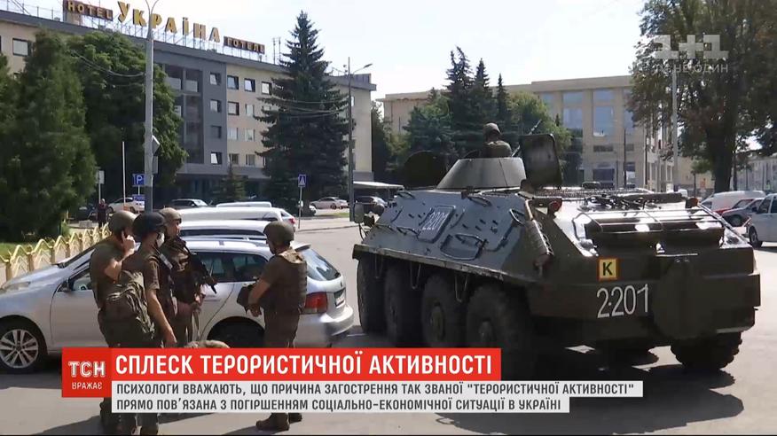 Луцький терорист, Полтавський терорист, а тепер ще й Київський. За два тижні в Україні - небачений сплеск активності, які правоохоронці класифікують як терористичні акти. А якщо до цієї цифри додати анонімних мінерів, спроби зґвалтувань та підпали автомобілів то становище виглядає дійсно катастрофічним. Психологи кажуть, що ситуація буде лише погіршуватись. Вони наголошують, що стрімке погіршення рівня життя в Україні і перманентний стрес, пов'язаний із цим, продовжать критично відображатись на поведінці суспільства.