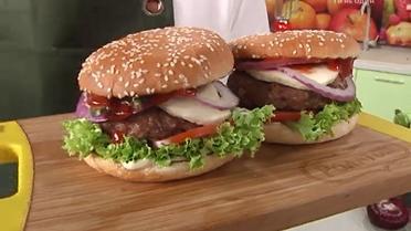 Для приготування смаколика вам знадобиться: м’ясний фарш, листя салату, гірчиця, сметана, огірки, томати і сир.