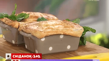 Для приготування смаколику вам знадобиться: листкове тісто, м'ясо, часник, солодкий перець, цибуля, печериці та вершки.