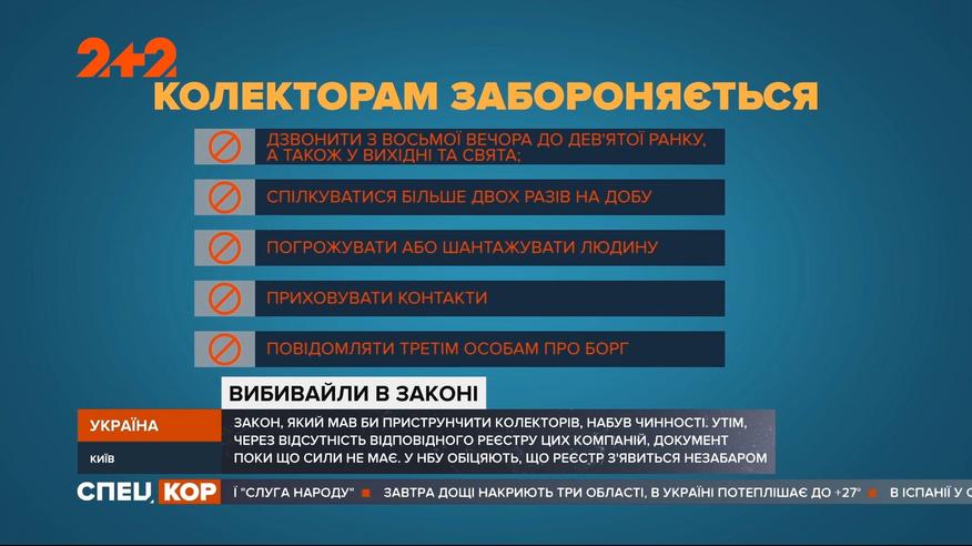 Уже й закон відповідний ухвалили, який мав би захистити боржників від знущань, та поки що безрезультатно. Усе тому, кажуть знавці справи, що реєстр компаній, які займаються колекторством,досі не запрацював. У "Нацбанку", який має контролювати діяльність фінансових вибивайлів, обіцяють, що за два місяці ситуація поліпшиться. Але рятувати людей від новоспечених рекетирів треба вже. Повні випуски дивіться на 1+1 video