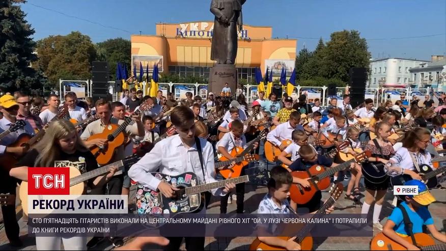 Разом 115 гітаристів виконали воєнний хіт "Ой, у лузі червона калина" на центральному майдані Рівного. Як досвідчені гітаристи, так і геть юні, з’їхалися зі всієї області. Масове виконання потрапило до Книги рекордів України - як найбільша кількість гітаристів на одній локації.