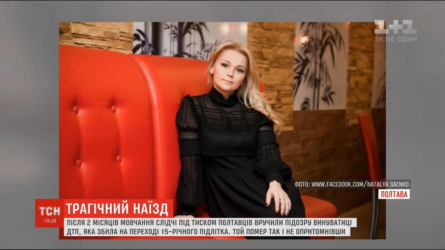 Після протестів полтавців і сюжету ТСН винуватиця ДТП, яка на переході збила 15-річного підлітка, відповідатиме перед законом. Артем Левченко після двох місяців у комі помер. А у власниці ресторанного бізнесу навіть не відібрали прав. Сьогодні Наталі Саєнко вручили підозру й обрали запобіжний захід.