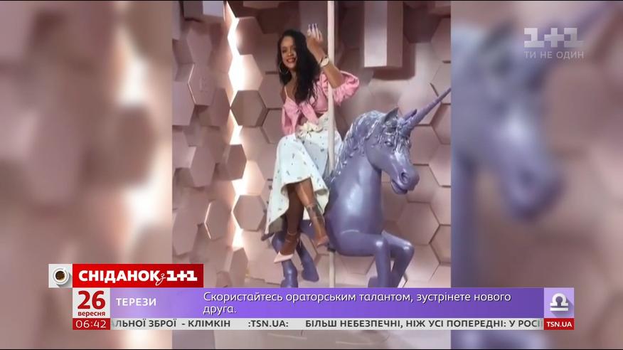 На презентацію своєї першої персональної колекції косметики Ріанна одягла сукню від української дизайнерки. Власне, цей look з весняно-літньої колекції був презентований в Києві на початку вересня. Тоді його і запримітив стиліст Ріанни - Джіджі Хадід.