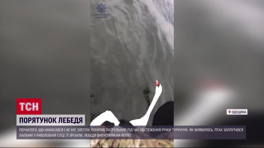 На Одещині копи з берегової поліції врятували лебедя від загибелі. Птах намагався злетіти, але не міг і вже геть знесилив. Його помітив патрульний під час обстеження річки Турунчук. Температура повітря різко знижувалася, і вода незабаром могла перетворитися на кригу - тож чоловік покликав допомогу. До лебедя, що з останніх сил борсався у крижаній воді, патрульні дісталися на човні. Як виявилось - птах заплутався лапами у риболовній сітці, її зрізали, а пернатого забрали у човен. Травм у нього не було і згодом красеня відпустили на волю.
