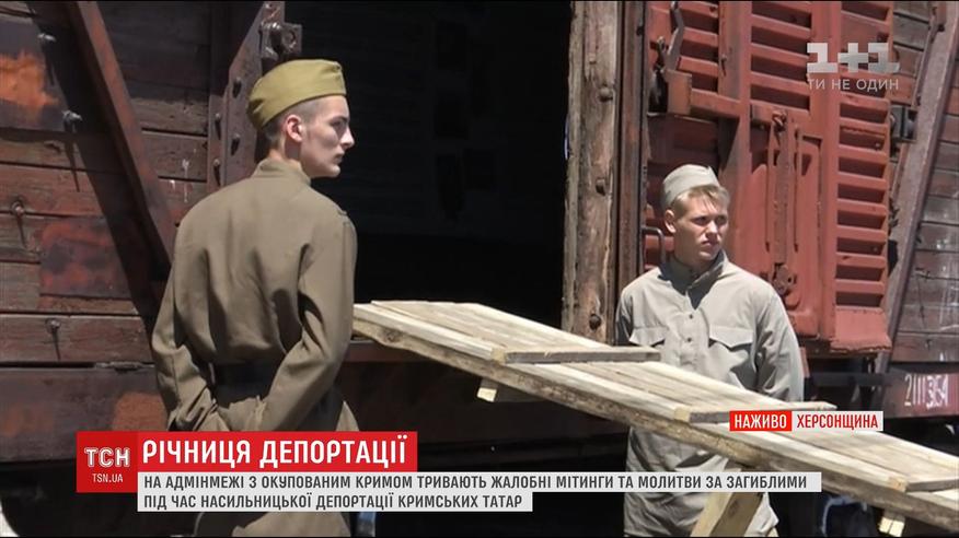 Жалобні заходи почалися у Новоолексіївці. На тамтешньому залізничному переїзді поставили старий товарний вагон, у яких вивозили кримських татар у 1944 році. Біля вагона провели жалобний мітинг і вшанували пам’ять загиблих хвилиною мовчання. Після акції на переїзді автопробіг дістався КПВВ Чонгар. На завершення люди запустили у небо великі повітряні кулі.