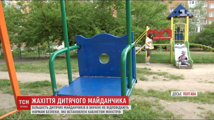 Полтавська дівчинка, яка зазнала компресійного переламу хребта, спустившись з гірки, лишається у лікарні та проведе там, ще місяць. Нещодавно так само, проїхавшись, втратила палець трирічна дитина у Хмельницькому. ТСН з’ясував, що більшість дитячих майданчиків не відповідають встановленим державою нормам.