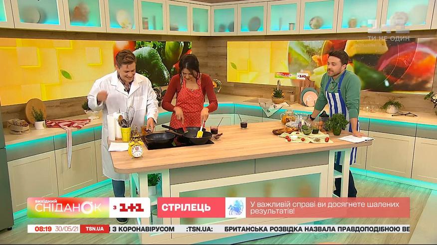 У студії "Сніданку" біохімік Гліб Репіч. Будемо готувати різнокольорову яєчню. Усі барвники у нас природні: це червонокачанна капуста, буряк та шпинат.