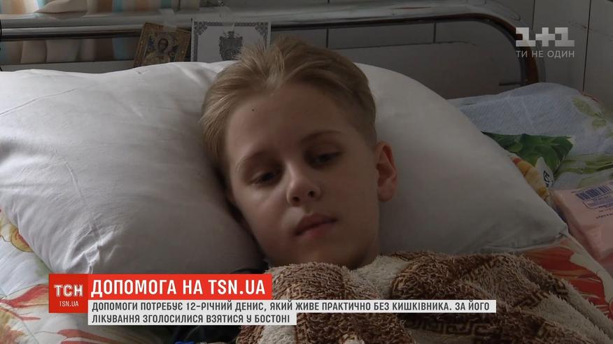 12-річний Денис живе майже без шлунка. Йому його видаляли по шматку в надії, що решта не буде відмирати. Але хвороба з'їдає. Лікарі Бостона пообіцяли взятися за надскладного пацієнта. А ТСН усіма силами хоче допомогти дозбирати суму, яку знесилені батьки Дениса збирають по всьому світу.