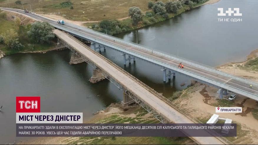 Майже 30 років чекали на міст. Мешканці кількох десятків сіл Калуського та Галицького районів Прикарпаття змушені були їздити аварійною переправою через Дністер. Бо хоч там проходить дорога державного значення, грошей на новий міст у держави весь час не було. І ось нарешті довгобуд здали в експлуацію. На відкритті побувала й ТСН.