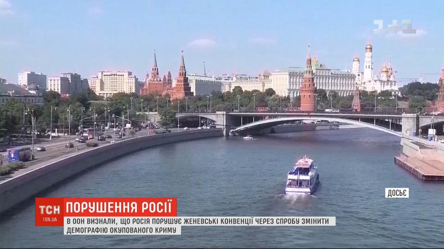 Таке вперше визнали в ООН. Йдеться, зокрема, про те, що Кремль свідомо заохочує власних громадян переселятися із материкової частини не незаконно анексований півострів. І саме це є прямою ознакою порушення четвертої Женевської конвенції.
