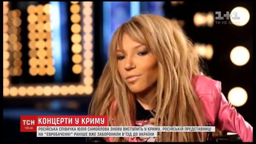 Російська співачка Юлія Самойлова, якій заборонили в'їзд на територію України через концерти в анексованому Криму, знову зібралася на півострів. Представниця Росії, яку в Україні оголосили персоною "нон-грата", 9 травня поїде у Севастополь. Там Самойлова візьме участь у концерті російських зірок до Дня Перемоги. Саме у цей день в Києві стартує міжнародний пісенний конкурс Євробачення.