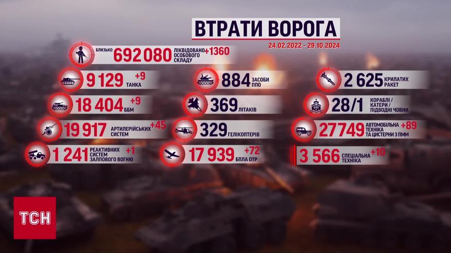 Російські втрати на полі бою за 29 жовтня 2024