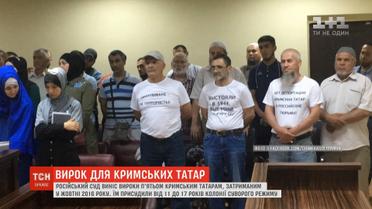 Від 11 до 17 років за ґратами в колонії суворого режиму. Такий вирок виніс суд в Ростові п'ятьом кримським татарам за звинуваченнями в терористичній діяльності. Затримали їх у жовтні 2016 року під час масових обшуків на території окупованого півострова, а за два роки етапували до Росії. Ніхто із засуджених провини не визнав. Судилище над собою називають переслідуванням за релігійною ознакою.
