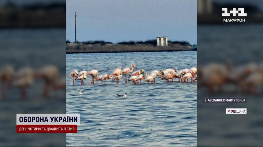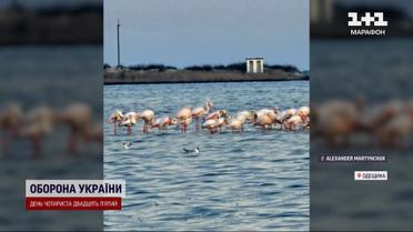 Зграя рожевих фламінго прилетіла на Одещину. 35 яскравих птахів нарахували у Національному парку «Тузлівські лимани» поблизу курортного селища Сергіївка. Орнітологи пояснюють: зграя зупинилася тут на годування. І після перепочинку птахи рушили далі - у напрямку дельти Дунаю. До того, як вони відлетіли, працівники парку встигли зробити кілька світлин.