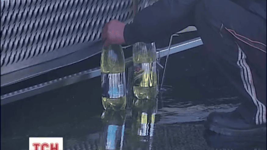 На головній магістралі столиці - проспекті Перемоги - перекинулась і врізалась у відбійник вантажівка з олією, яка прямувала до Білорусі. За олією, що лилась фонтаном вишикувалася черга жителів найближчих будинків.
