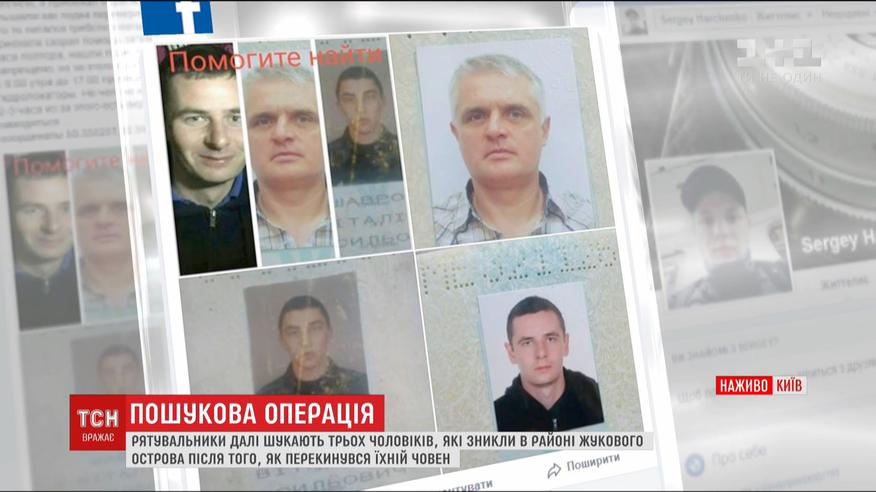 Вони упродовж всього дня досліджували ділянку річки біля Жукового острова. Шукали за допомогою спеціального пристрою, який сканує дно. Також працювали водолази. Пошуки результатів не дали. У Мережі родичі та знайомі зниклих розповсюдили інформацію із фотографіями зниклих чоловіків.