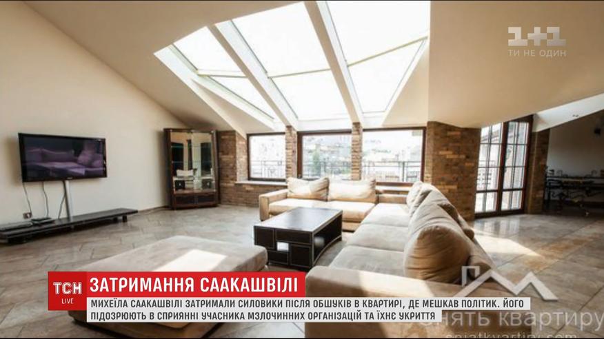 Розкішний пентхаус, на два поверхи, площею 252 квадратних метри з автономною системою опалення і кондиціювання. Це квартира, яку, за даними ТСН, останнім часом орендував Саакашвілі. Саме з неї він тікав від силовиків на дах, на якому провів сьогоднішній ранок. Світлини дворівневого помешкання в дореволюційному будинку на Костьольній, 7 є в Інтернеті на сайті елітного житла. Згідно з оголошенням вартість оренди - 6 тисяч доларів на місяць.