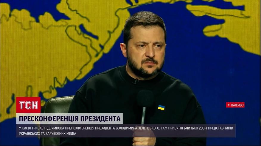 У столиці триває пресконференція президента України Володимира Зеленського. Востаннє глава держави зустрічався з журналістами в такому форматі 24-го лютого 2023 року. Журналістка ТСН Інна Лебеденко стежить за перебігом. У неї й дізнаємося що цікавого сказав президент.