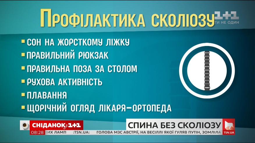 В гостях Сніданку хірург Ростислав Валіхновський. Він розповість, що таке сколіоз, що може посприяти розвитку хвороби, як вчасно розпізнати сколіоз у дитини. А також про те, як його уникнути і що робити для профілактики розвитку хвороби.
