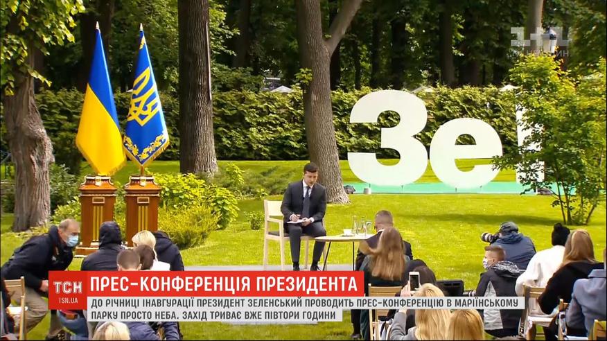 В Маріїнському парку, де зібрали журналістів, триває пресконференція президента Зеленського. Що відбувається за лаштунками пресконференції і які важливі відповіді Володимира Зеленського вже пролунали - дивіться у прямому включенні.