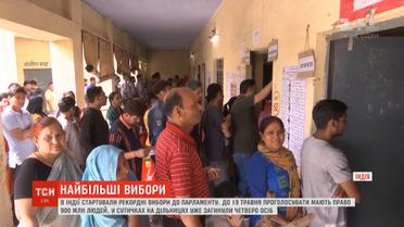 Напередодні у країні стартували найчисельніші вибори у світі. Проголосувати за депутатів нижньої палати парламенту мають майже мільярд людей. Це рекордна кількість виборців у світовій історії. Саме тому голосування проводитимуть майже півтора місяці – до 19 травня. А от підрахувати результати обіцяють за три дні. Підсумки оголосять 23-го травня.