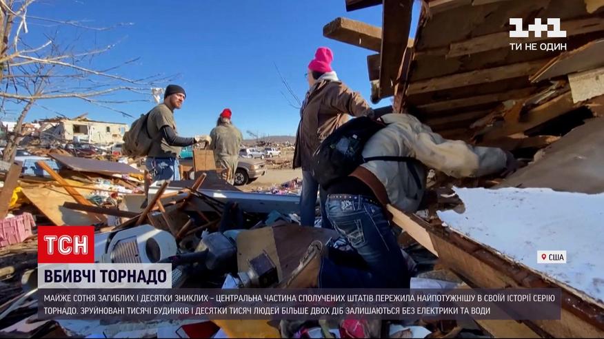 Майже сотня загиблих і десятки зниклих – центральна частина Сполучених Штатів пережила найпотужнішу в своїй історії серію торнадо. Деякі міста після вихідних виглядають наче після бомбардування – зруйновані тисячі будинків і десятки тисяч людей більше двох діб залишаються без електрики та води.