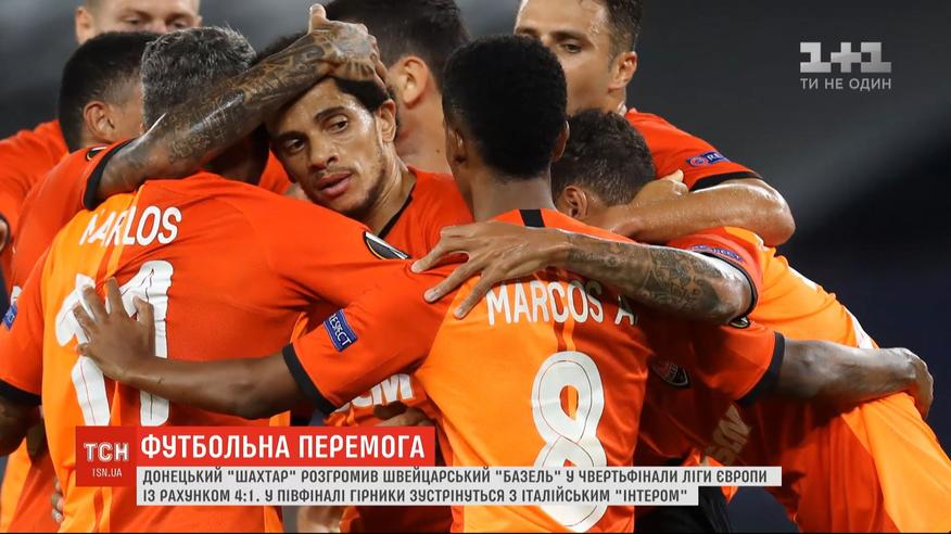 Український клуб у півфіналі Ліги Європи. Донецький "Шахтар" буквально розгромив швейцарський "Базель" у чвертьфіналі, який через панденію коронавірусу складався з одного матчу і відбувся на нейтральному полі в Німеччині без глядачів. Переможний рахунок 4:1 "Шахтарю" забезпечили Мораес, Тайсон, Алан Патрік та Додо. У півфіналі, в якому буде теж лише один поєдинок, "Шахтар" вже в понеділок зіграє з італійським "Інтером".
