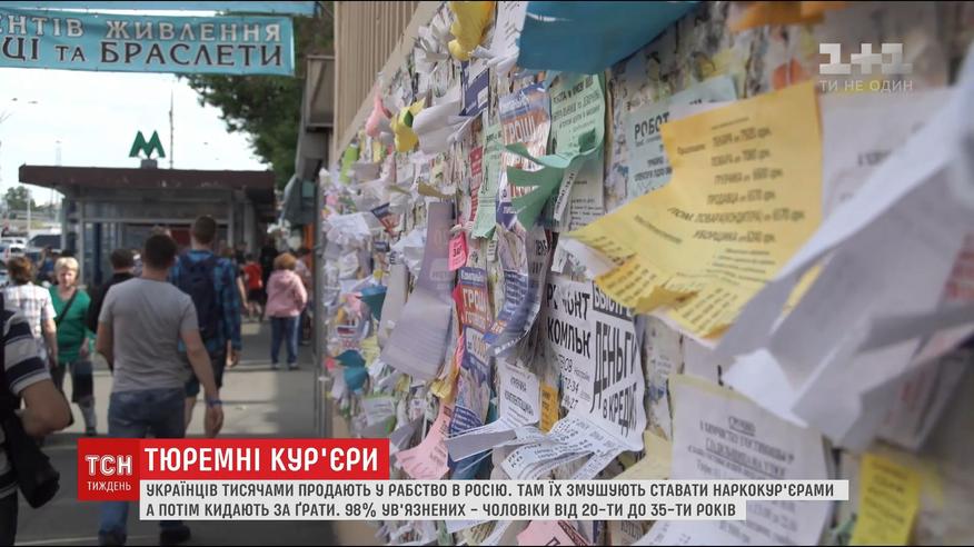 Оголошеннями про легку роботу з хорошим заробітком у Росії були завалені міста по всій Україні. Людей заманюють хорошими умовами і фотографують паспорт. У Росії українців ставлять перед фактом, що доведеться розносити не мобільні телефони чи косметику, а наркотичну курильну суміш. Коли людина відмовляється, починаються погрози, катування і ґрати СІЗО чи в'язниці.