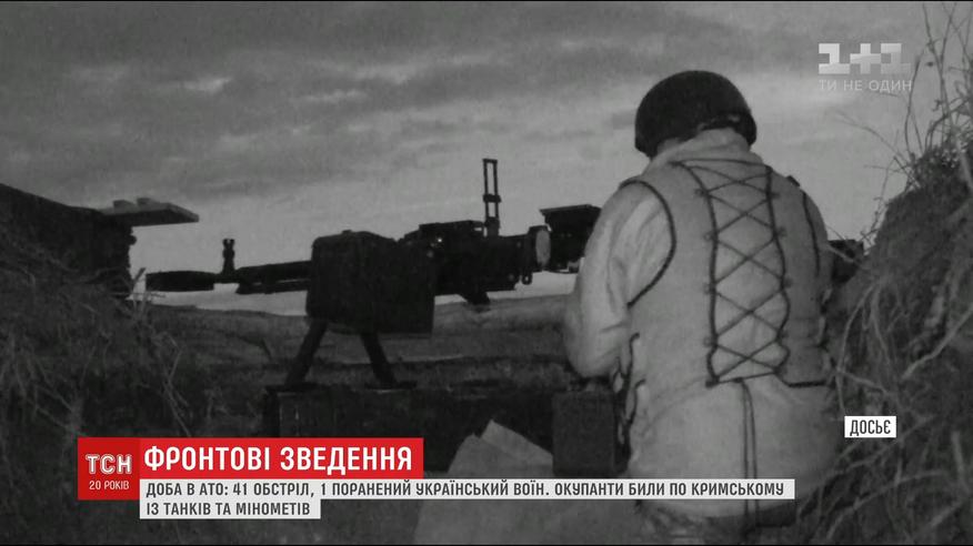 Понад чотири десятки обстрілів зафіксували за добу. На Луганщині по Кримському окупанти вдарили з танка, мінометів та гранатометів. Також від мінометний вогонь потерпала приморська ділянка фронту. А На Донеччині поновилися інтенсивні обстріли на околицях Авдіївки та Світлодарський дузі. У Пісках один українських воїн отримав поранення.