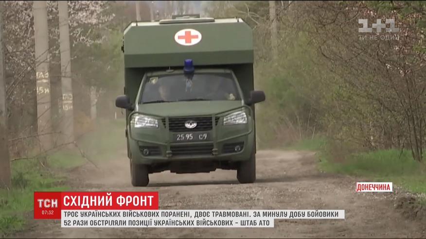 Троє українських військових поранені, двоє - травмовані. На Донецькому напрямку із мінометів та гранатометів бойовики гатили поблизу Новотроїцького. Під мінометним вогнем - Лебединське, Верхньоторецьке, Піски, Красногорівка та шахта Бутівка. На Луганщині міномети, гранатомети та кулемети зафіксували неподалік Золотого.