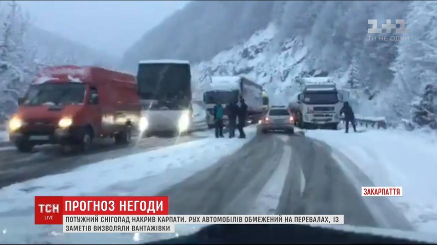 Через потужний снігопад, який накрив Захід України, в Карпатах можливе сходження лавин. Через негоду там і досі складно на дорогах. Сьогодні вже іде помірний сніг. Але інтенсивно засипає у гірських районах. Напередодні безліч фур застрягли на трасах і на перевалах. Рух частково обмежували на Львівщині і на Закарпатті. Рятувальники виставили пости.