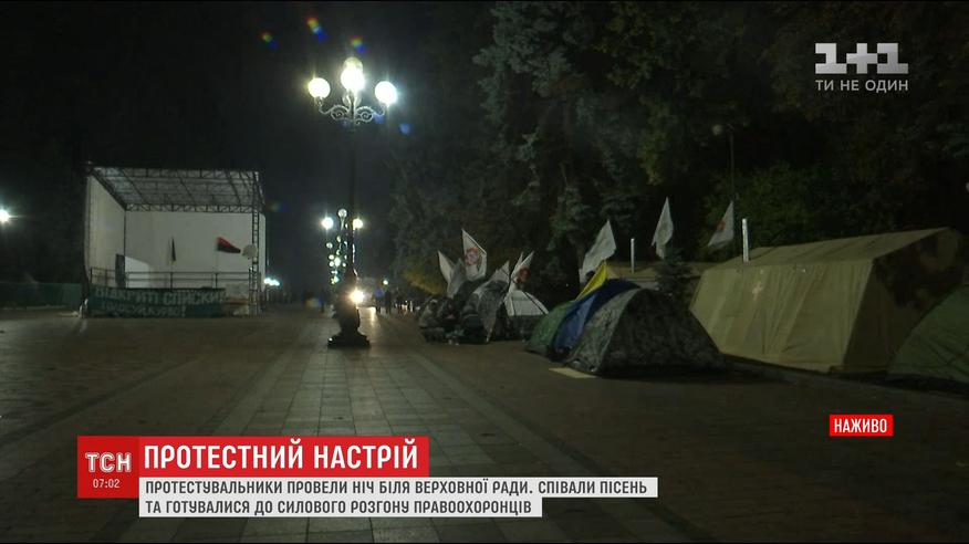 Штовханина з правоохоронцями і пісні під баян: як минула ніч у наметовому містечку біля ВР