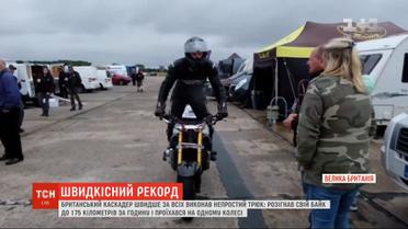 Світовий рекорд на одному колесі. Британський каскадер швидше за всіх виконав непростий трюк. Розігнавши свій байк до 175 кілометрів за годину, Джонні Девіс проїхав на одному колесі дві сотні метрів. Місцем для встановлення рекорду обрали один з аеродромів у Північному Йоркширі. На рівній злітній смузі каскадер зміг розігнатися на два кілометри швидше, аніж попередній рекордсмен, ірландець Енда Райт. Його досягнення Книга рекордів Гіннеса зафіксувала у 2008, рекорд британця Девіса поки очікує на офіційне підтвердження.