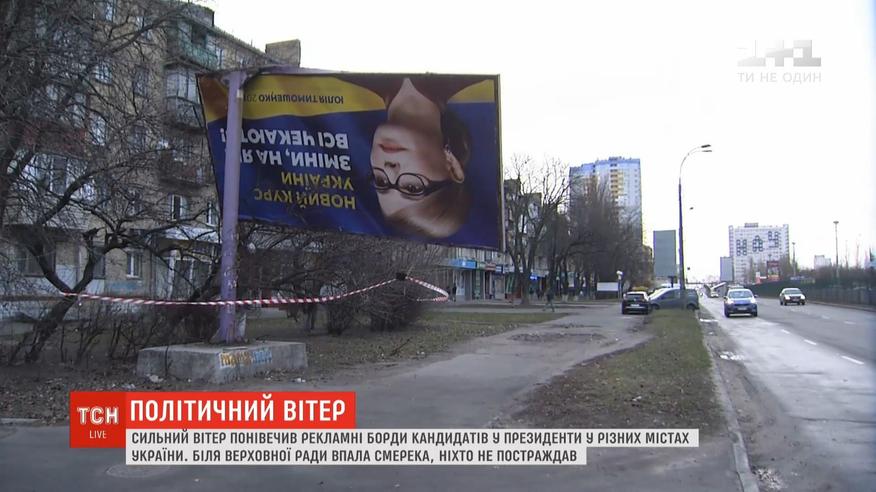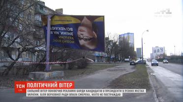 Сильний вітер понівечив рекламні борди з кандидатами у президенти