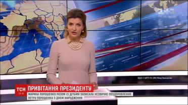 У мережі з'явився 5-хвилинний ролик, у якому Марина Порошенко оголошує екстрений випуск новин і у студії на тлі великого портрета свого чоловіка перераховує усі його досягнення на посту президента. Про них розповідають і діти. Про особисте Марина Порошенко говорить стримано, під ліричну музику і лише наприкінці ролику.