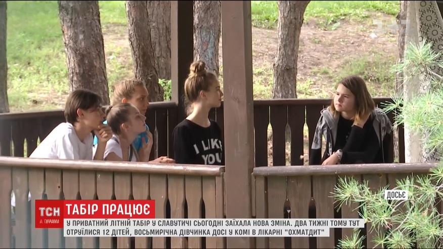 Нова зміна після отруєної сьогодні заїхала у табір "Славутич" під Києвом. Два тижні тому там раптово занедужали 12 дітей, одна з дівчат - досі лежить у комі. У приватному "Славутичі", путівка у який коштує майже 16 тисяч гривень, два дні тому спеціалісти Держспоживслужби вкотре виявили на кухні стафілокок та кишкову паличку, та надали припис, що роботу харчоблоку треба припинити. Та попри всі заборони, табір працює.