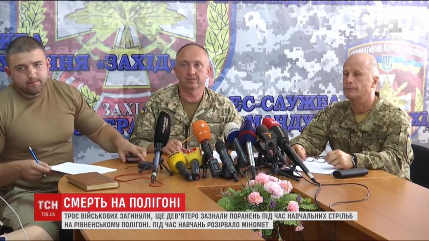 Порушення техніки безпеки або несправність міномета - це головні версії трагедії на Рівненському полігоні. Троє військових, які стояли до нього найближче, загинули. Ще 9 контрактників поранило осколками від міномета. Трьох військових із вкрай тяжкими травмами гелікоптером переправили до Львова. У Рівному нині залишається шестеро бійців. На полігоні зараз працюють військова прокуратура та поліція.