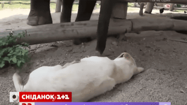 Цього чотирилапого сонька навіть слон не зміг розбудити. Песик вирішив подрімати біля огорожі. А от набридливий вухань захотів його розворушити. Слон легенько підштовхнув собаку – але той не зреагував. Вухань навіть схопив песика за лапи, проте і це не допомогло. Таке воно - всеперемагаюче бажання спати.